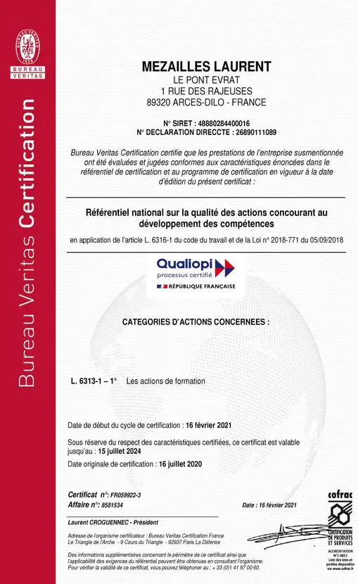 Certification de l'organisme de formation